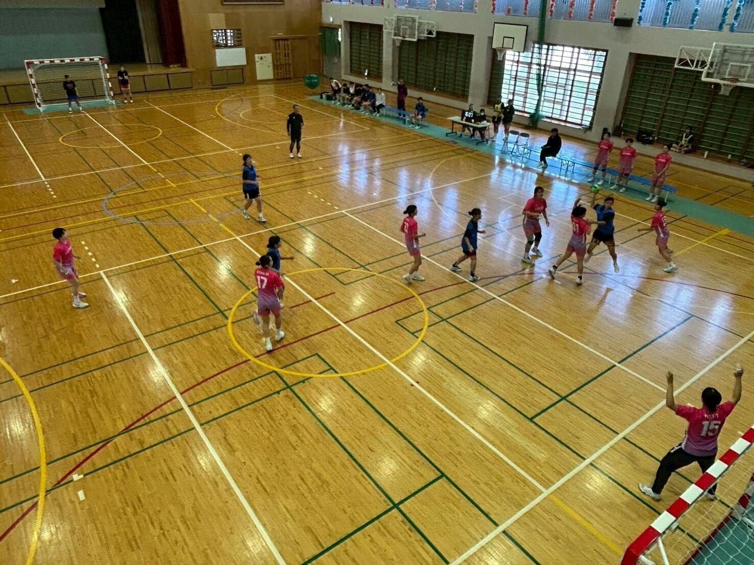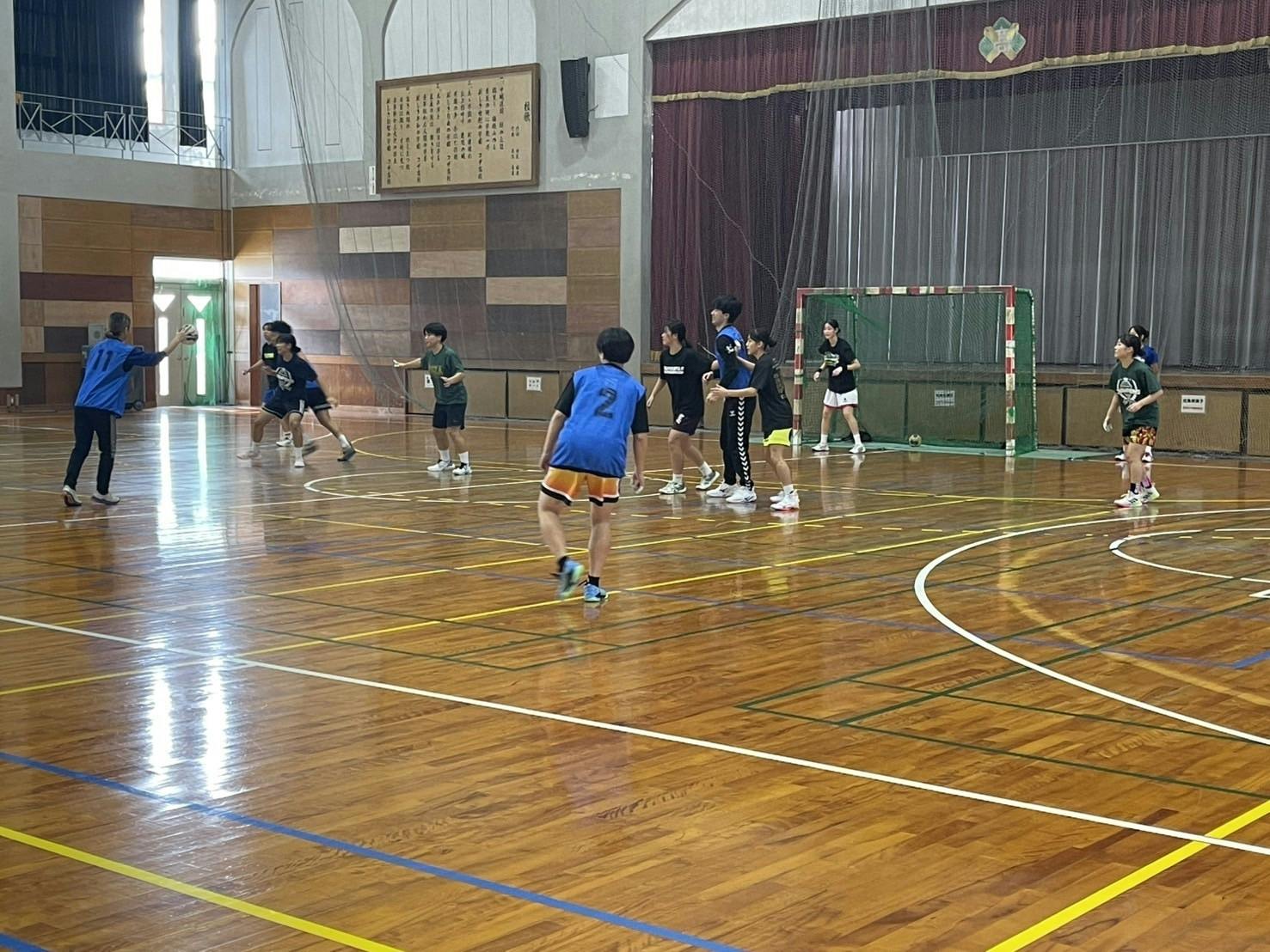 今年の新チーム結成から、公式戦3大会中2冠を達成し、九州高等学校選抜ハンドボール大会沖縄県予選でも準優勝し着実に成長を続けております。部員19名、指導者・引率者3名の合計22名で、日々文武両道を目指し練習に励んでいます。