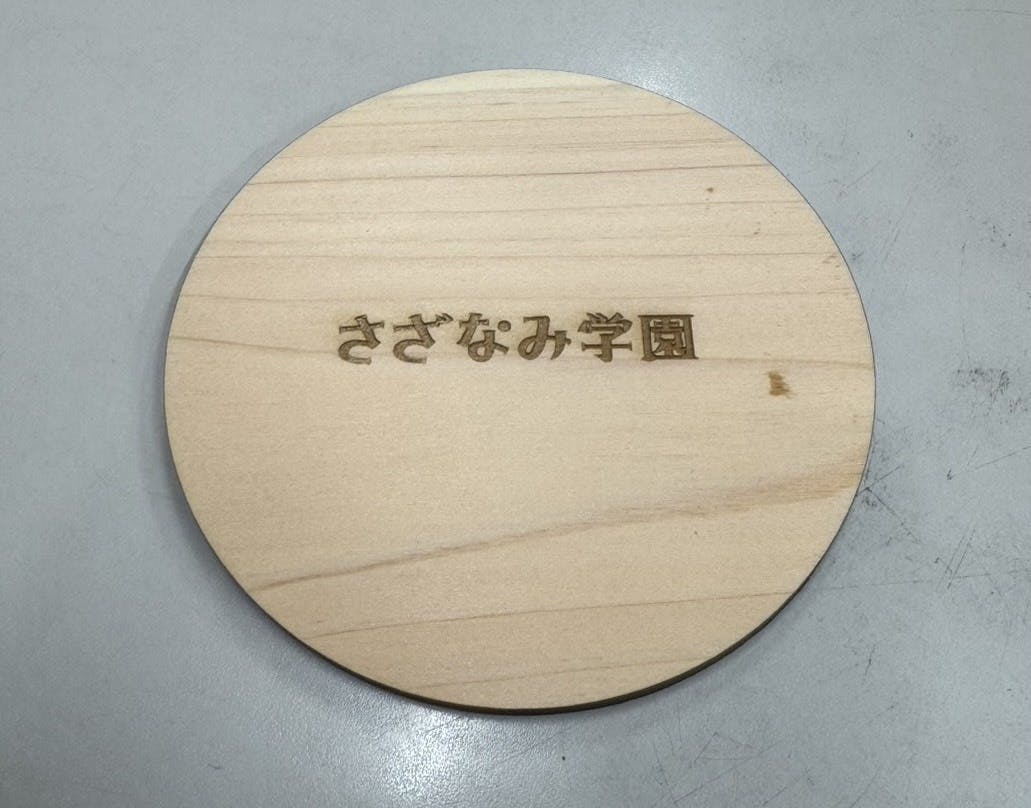 新しいさざなみ学園が建つこの場所には、長い年月、子どもたちの生活を静かに見守ってきた木々がありました。改築にあたり、やむを得ず伐採することになったその木を、ただ処分するのではなく「この場所の記憶を未来へつなぐ形」として残したい。そんな想いから生まれたのが、この木製コースター・木製携帯スタンドです。