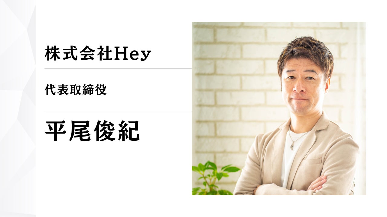はじめまして。株式会社Hey 代表取締役の平尾俊紀(ひらお としのり)と申します。