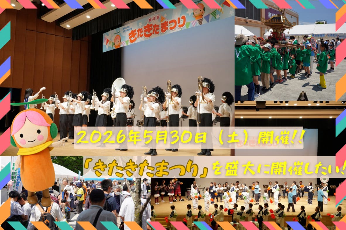 今年の「きたきたまつり」は、令和8年5月30日(土)に、ありまホールおよび周辺屋外エリア(岡場)で開催します。