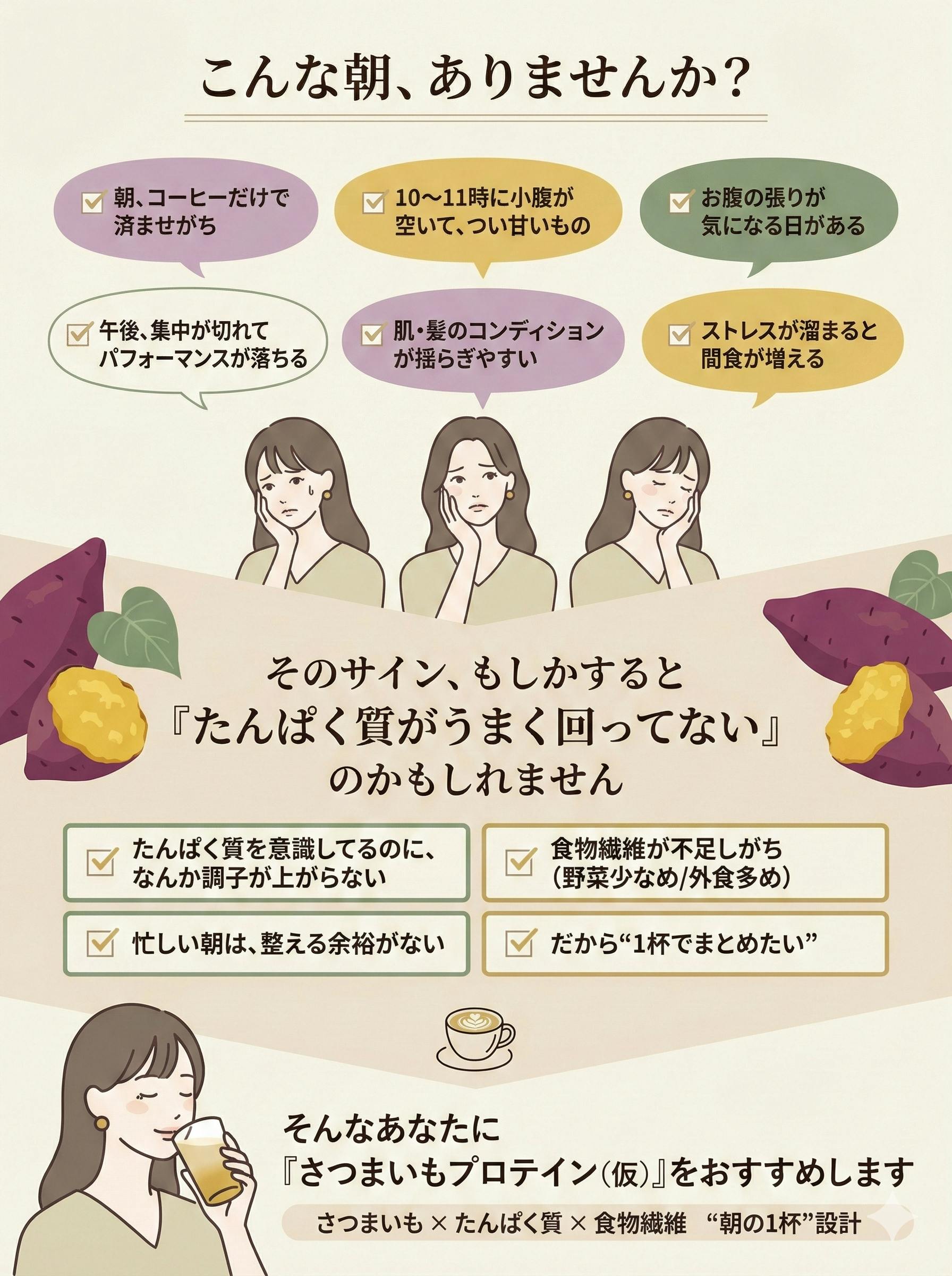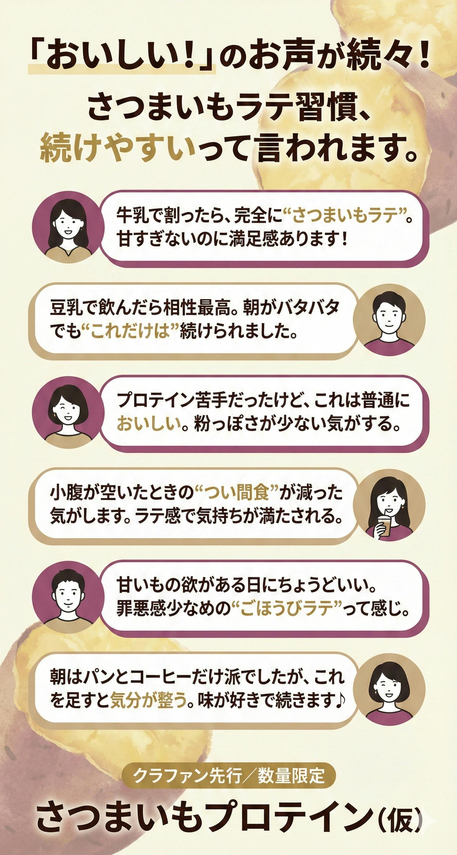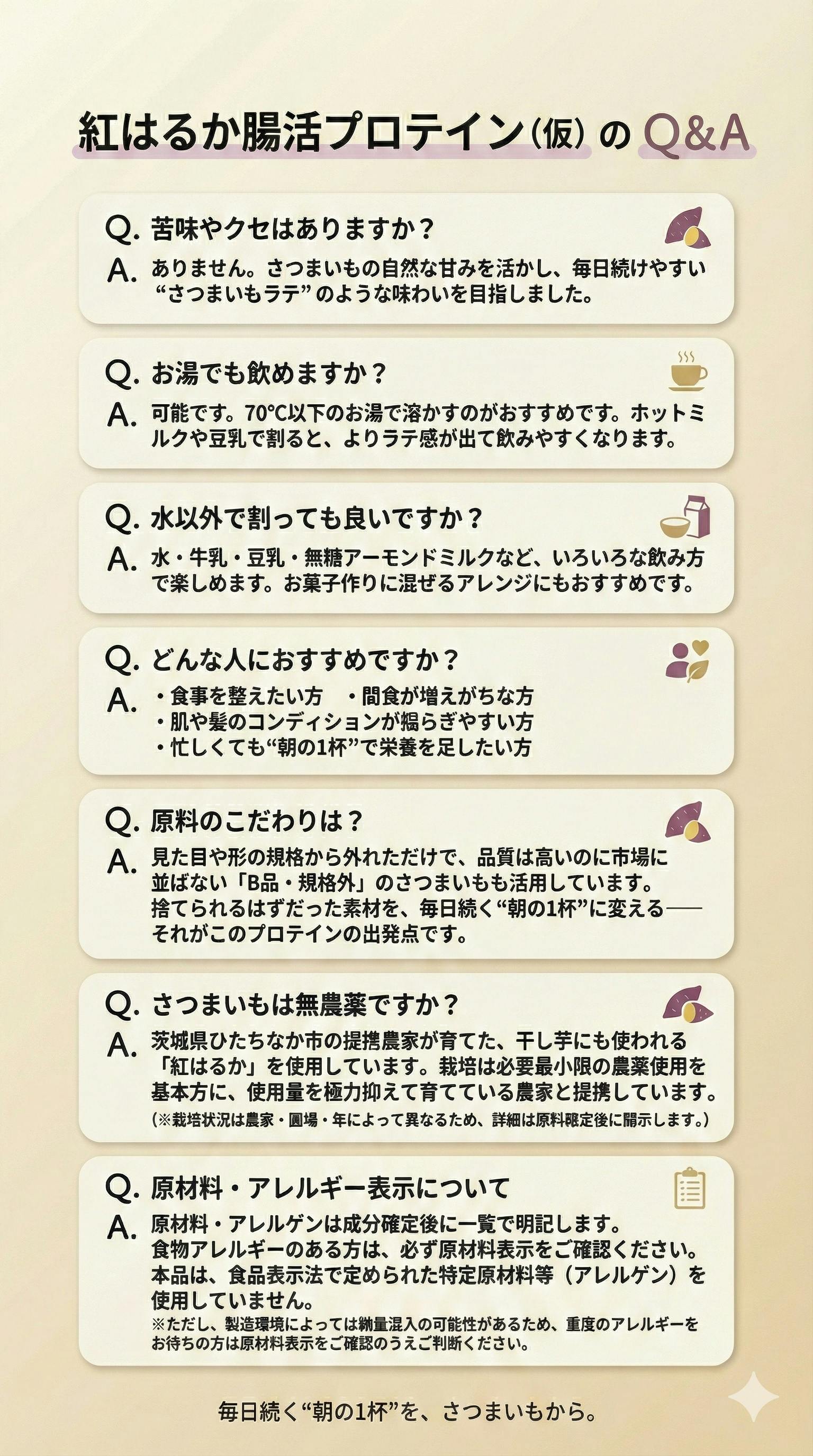 『紅はるか腸活プロテイン(仮)』は、そんな“安心して続けられる設計”を目指しています。