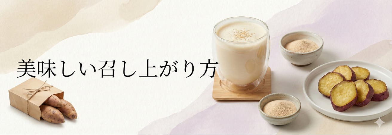 牛乳や豆乳に混ぜるだけで、ほんのり甘く、やさしい味わいの“さつまいもラテ”を手軽に楽しめます。