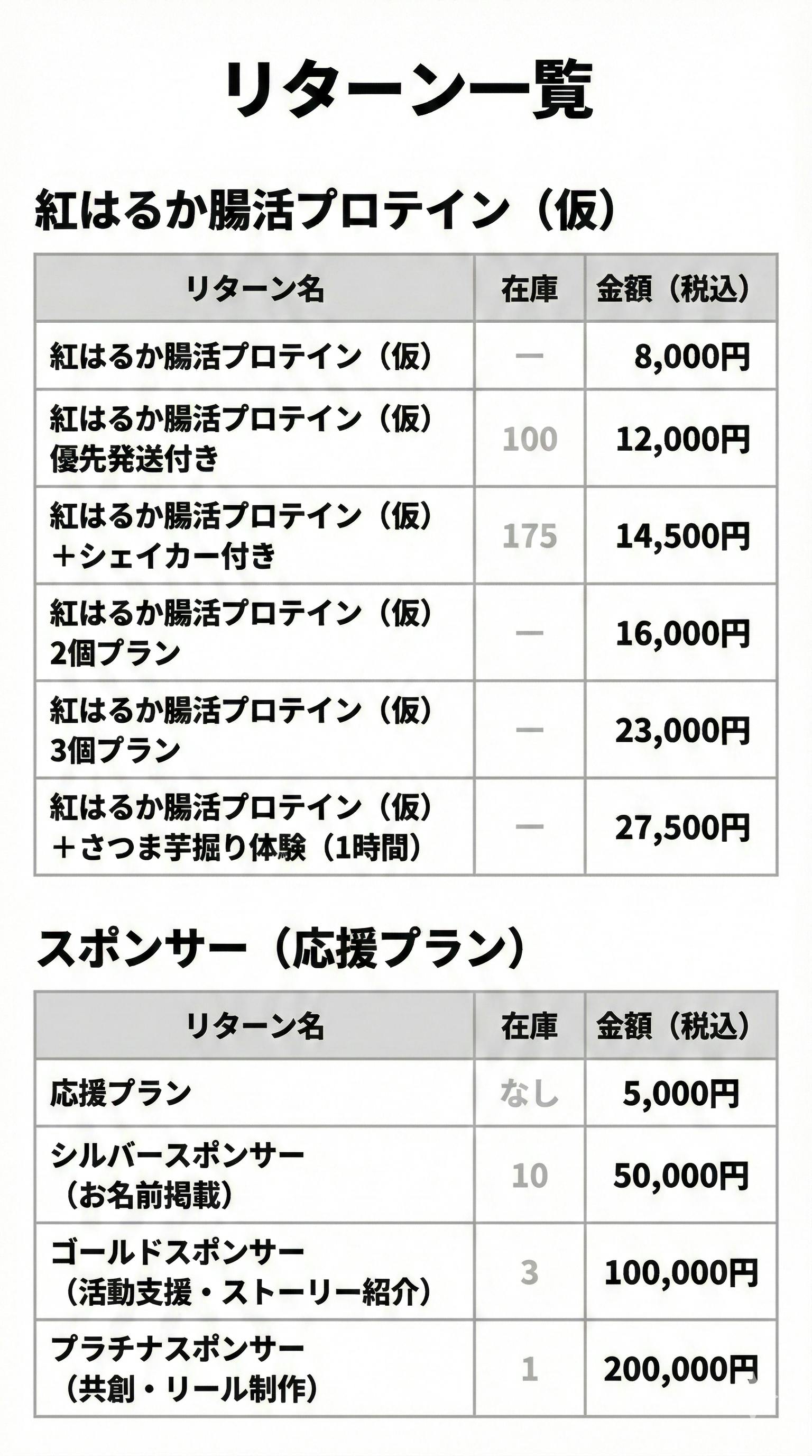 いただいたご支援は、『紅はるか腸活プロテイン(仮)』を確実に“商品として成立”させるために、以下に大切に活用します。