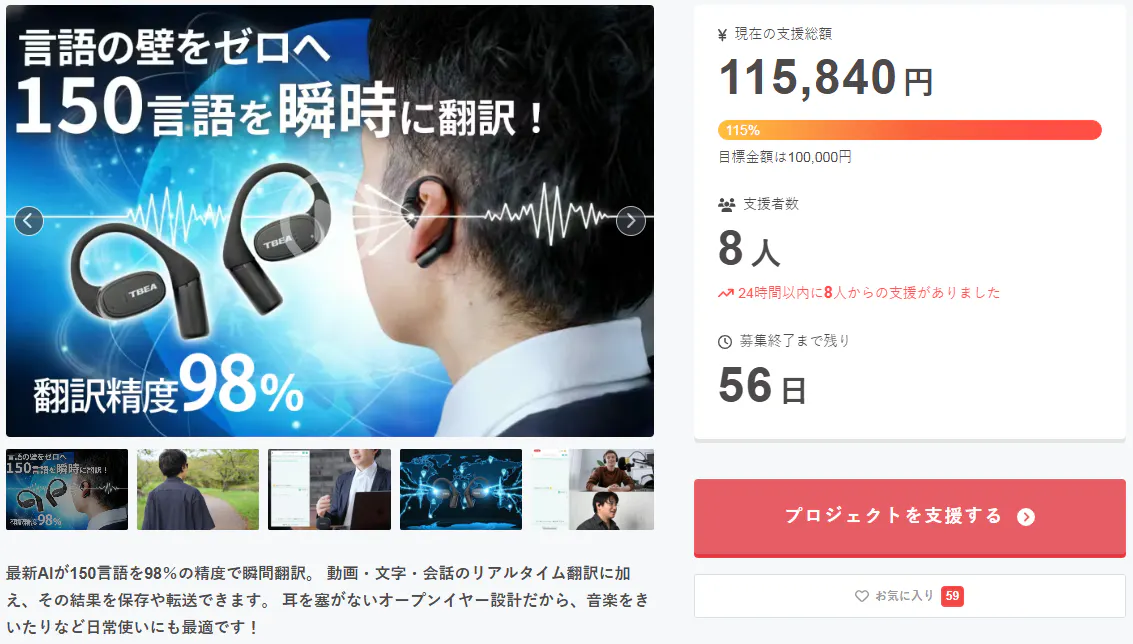 2026/03/29 18:40この度は「150言語を瞬時にAI翻訳!語学要らずでリアルタイムに会話ができる翻訳イヤホン!」に支援頂き誠にありがとうございます!お陰様で、開始から5時間経たずに10万円の目標金額を100%達成することができました。ご興味のある方、ぜひ支援お願い致します。https://camp-fire.jp/projects/913761/viewBrightチームは、当プロジェクトをもっと多くの方に知っていただきたいと考えております。よかったら、FacebookやTwitter等のSNSでのシェア・拡散をお願い致します。#v1翻訳イヤホン #brightdiyどうぞよろしくお願い致します。Brightチーム もっと見る
