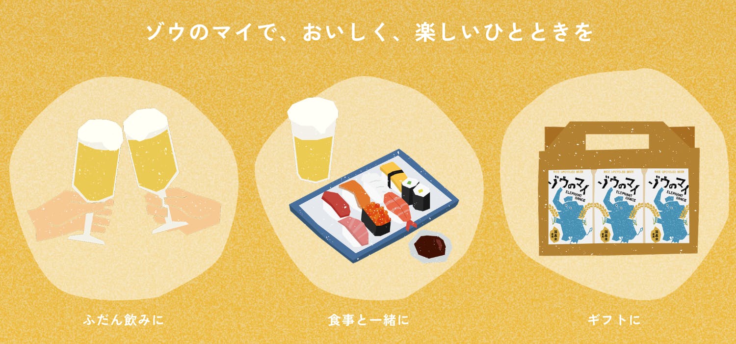 そんな社員一人ひとりの切実な想いが、このプロジェクトを動かしました。「ごはん」を愛する私たちが辿り着いた答え、それがアップサイクルビール「ゾウのマイ」です。