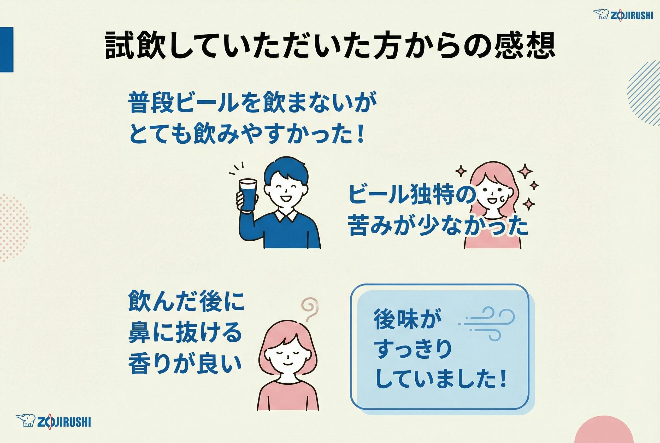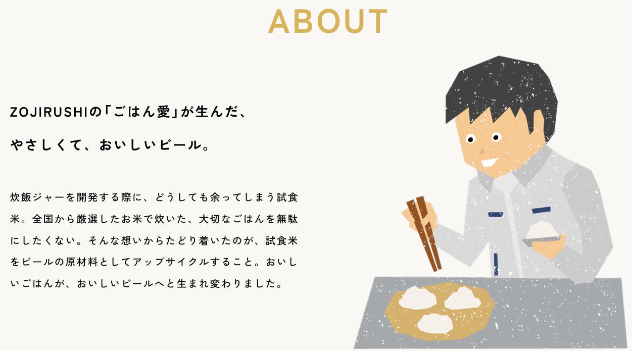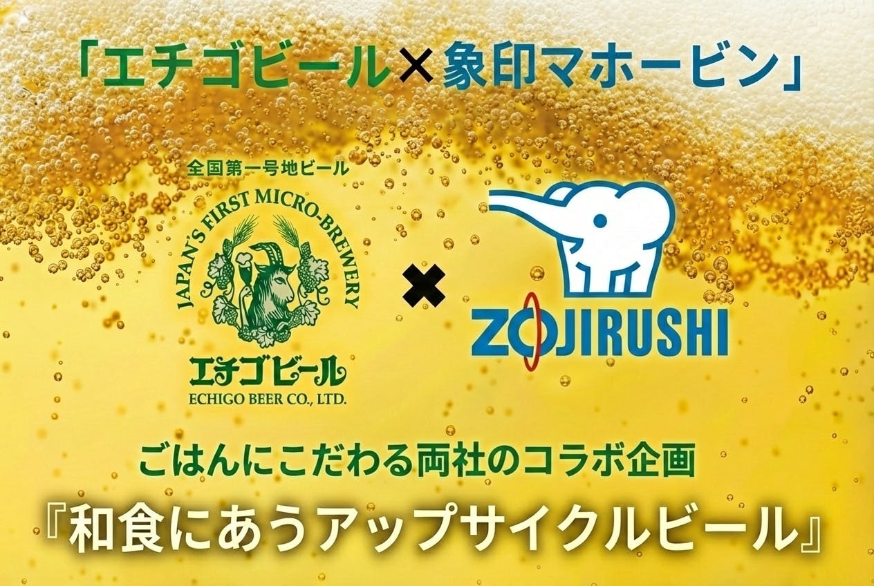 「炊飯ジャーの象印が、なぜビールを?」と驚かれるかもしれません。私たちは長年ごはんのおいしさを追求する中で、炊飯ジャーの開発過程で生じる食べきれなかった“もったいないごはん”の活用方法を模索してきました。これまでもさまざまなアップサイクル商品を開発しましたが、このたび、クラフトビール第2弾となる「ゾウのマイ」を発売する運びとなりました。全国第一号クラフトビール(地ビール)の醸造所として知られるエチゴビール株式会社様にご協力いただき、象印らしく、魅力あるクラフトビールを開発することができました。「日常生活に驚きを提供し、ビールが作り出すストーリーを感じていただく」をコンセプトに、ホップの特徴である柑橘の香りと、苦みを抑えた和食に合うすっきりした味わいで、お客様の日々の食卓に楽しさを添えるビールを目指しました。“もったいないごはん”を捨てずに、新たな価値を持つビールへと生まれ変わらせる。それは、ごはんを愛する象印だからこそ辿り着いた、新しい「アップサイクル」の形です。象印の新たな挑戦に、温かいご支援をお願いいたします。