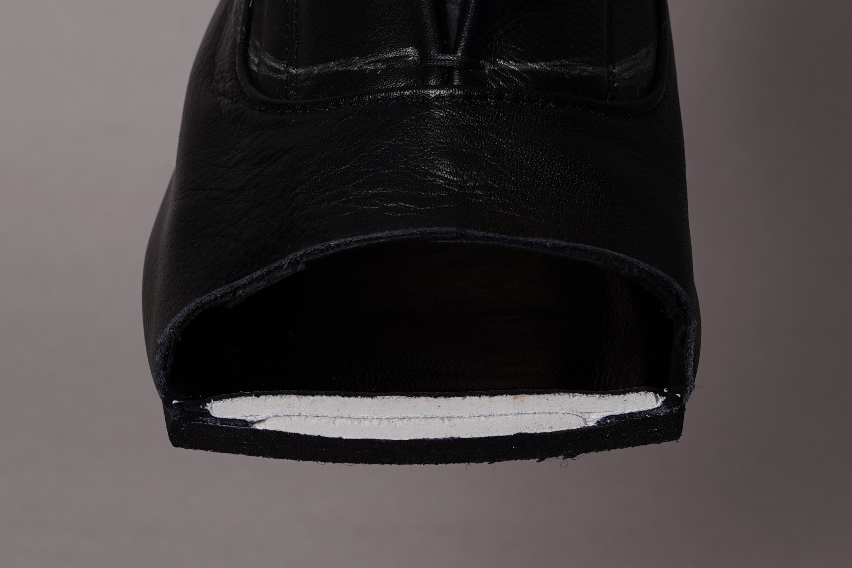 この製法は裏革(ライニング)と中敷きの周囲を袋状に縫い合わせることによって、ソックスを履いたように足にフィットし、柔らかく包みこまれる履き心地を実現します