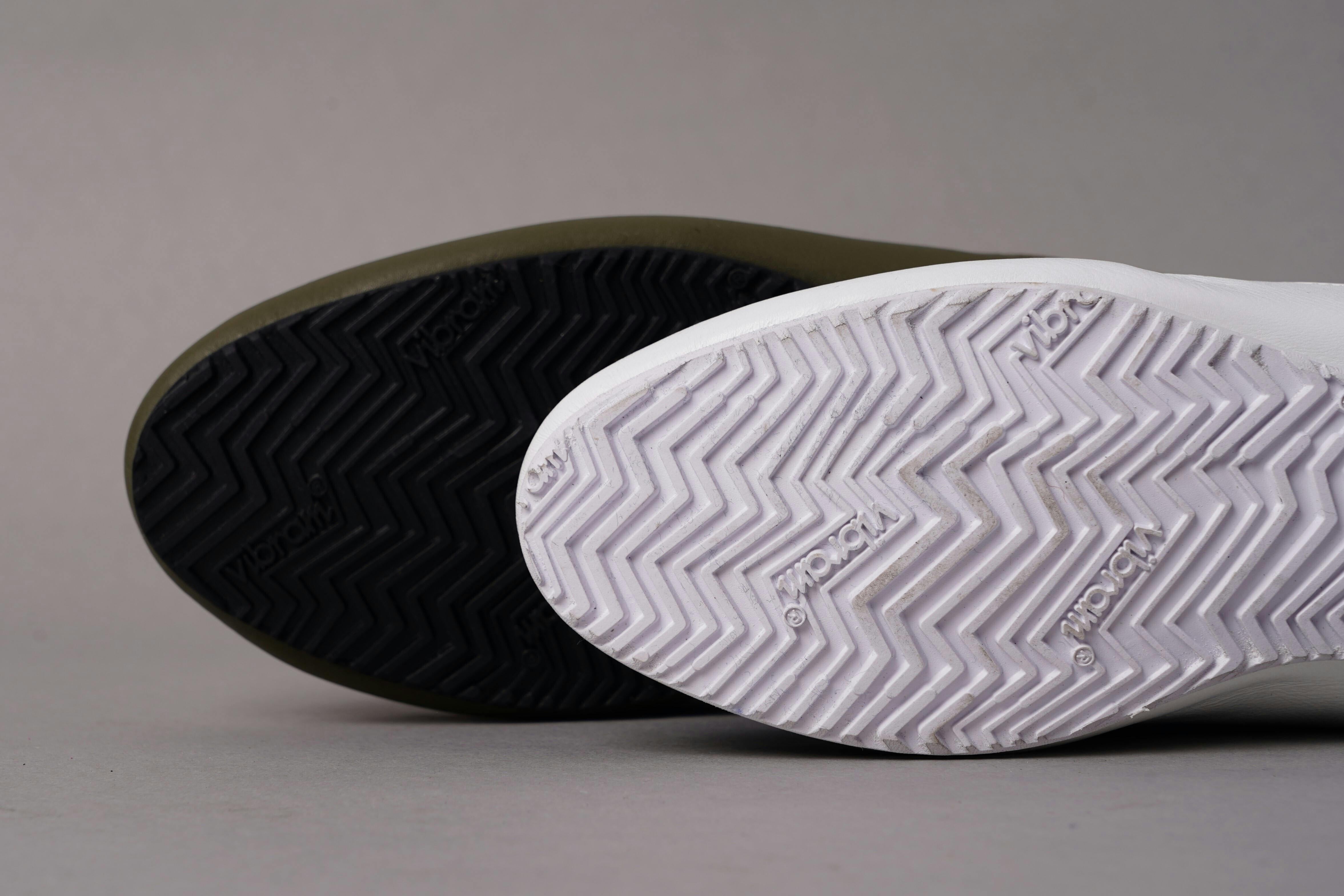 靴底には登山靴で有名なイタリア老舗ソールメーカーVibram社のソールを使用ヴィブラムソールは元々登山用のソールなので、丈夫で滑りにくく耐久性に優れているのがポイント