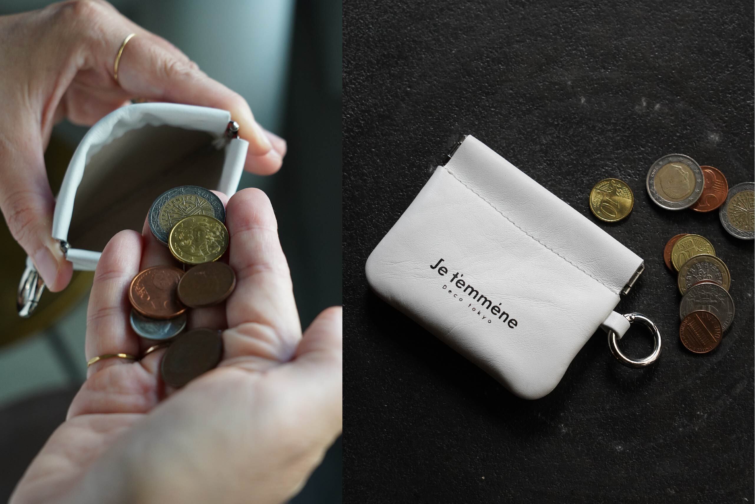 そんな靴に使えずに残った革を再利用するべく、Je t'emmène初めての小物を制作しましたエコなコインケースです