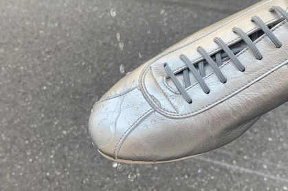 BLACK・WHITE・シルバーに関しては、革を作る段階(なめし)で撥水剤を含ませるという方法で作られているので効果が持続します