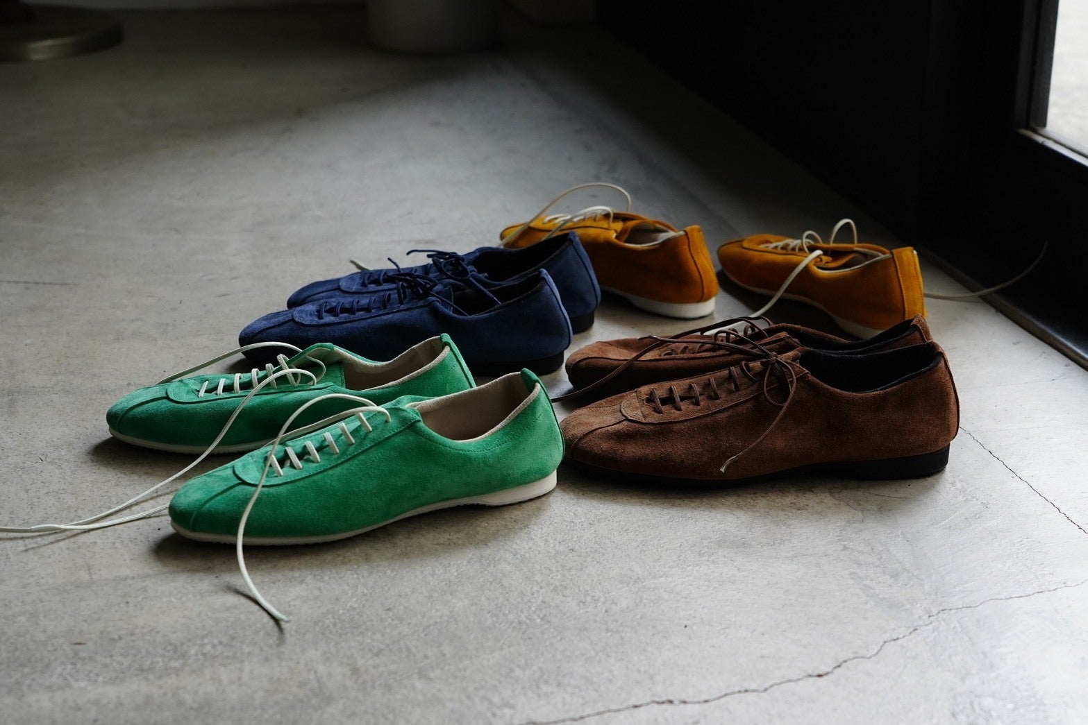 今回は定番のスムース3色に加え、スエード(起毛素材)を使用したカラーを4色展開定番のスムースとはひと味違う表情をお楽しみください