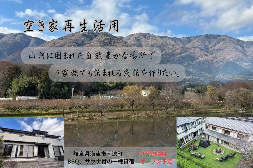 私たちは岐阜県海津市南濃町で、空き家を再生した一棟貸しの民泊施設を立ち上げようとしています。