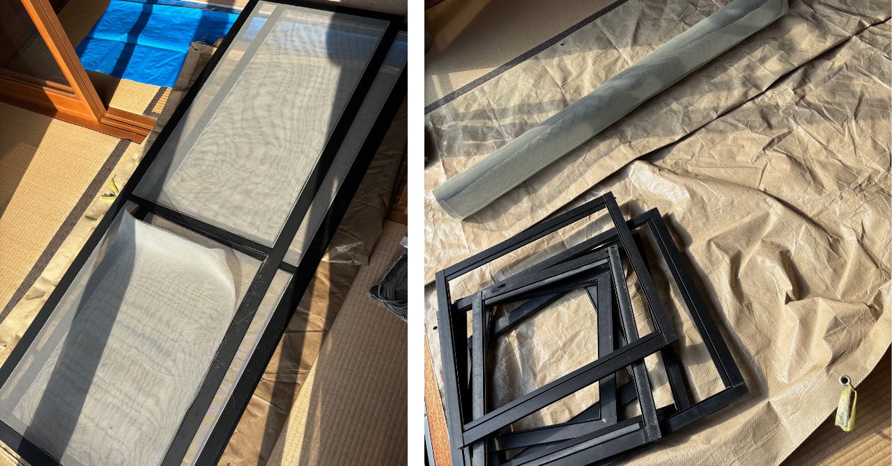 私の方では1Fの網戸の清掃・網戸の網張替え、高圧洗浄機で犬走り清掃を行いました。