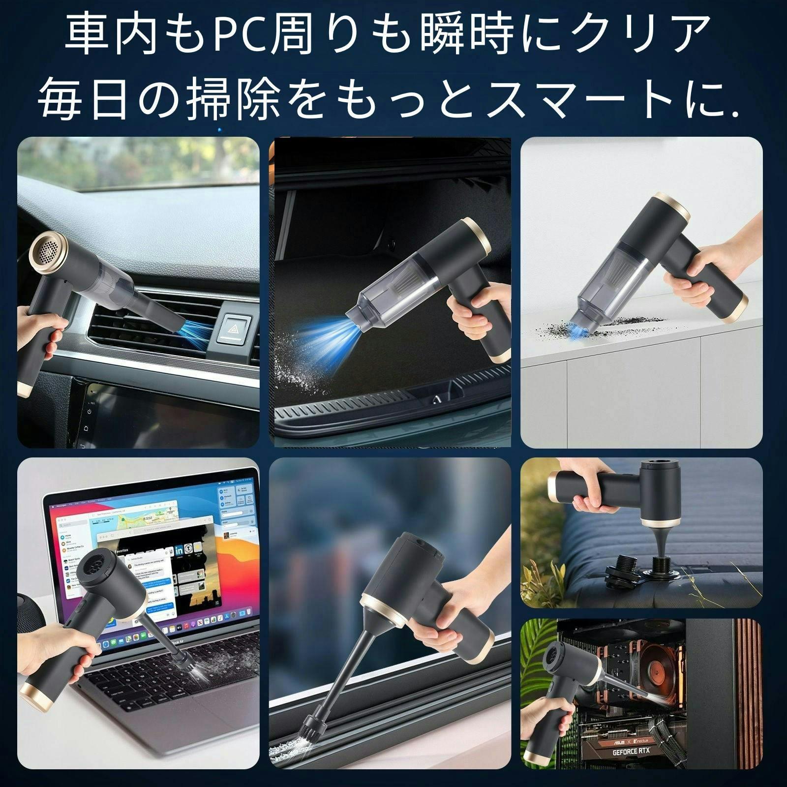 2026/02/04 18:00このブロワー&クリーナーが活躍するシーンは、想像以上に幅広いです。▼ デスク周り・キーボードの隙間掃除・PC周辺のホコリ除去・デスク下の細かなゴミ▼ 車内・フロアマットの砂利・シートの隙間のゴミ・エアコン吹き出し口のホコリ▼ 日常使い・棚や家電周りのホコリ・ペットの毛の簡易掃除USB Type-C充電式なので、自宅・車内・外出先でも場所を選びません。「掃除機を出すほどじゃないけど気になる」そんな瞬間に、一番頼れる存在です。 もっと見る