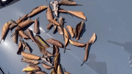 ◇車のボンネットに乗った落ち葉
