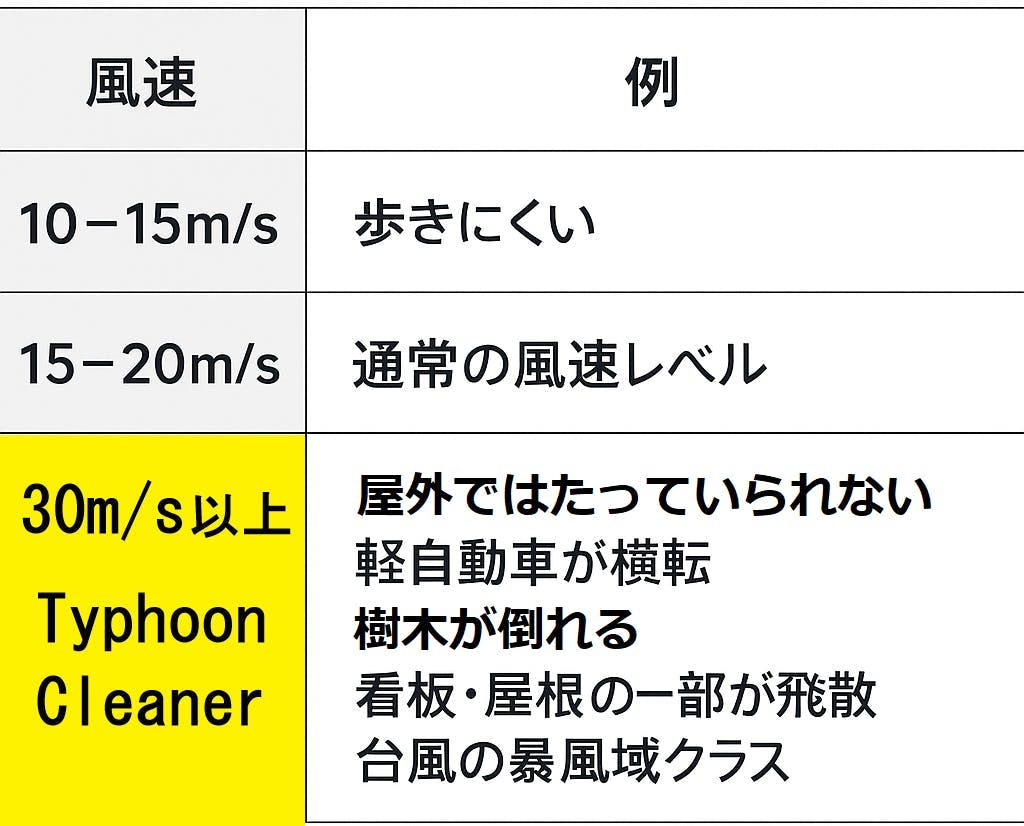 風速30m/sは台風で「非常に強い」または「猛烈な風」とされる暴風圏クラスの風力です。
