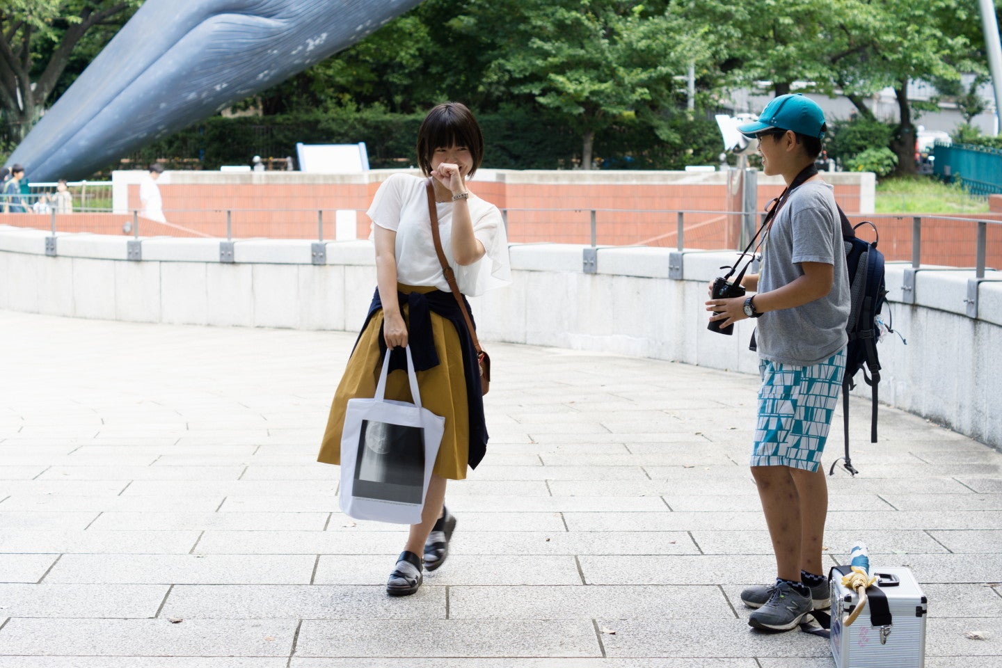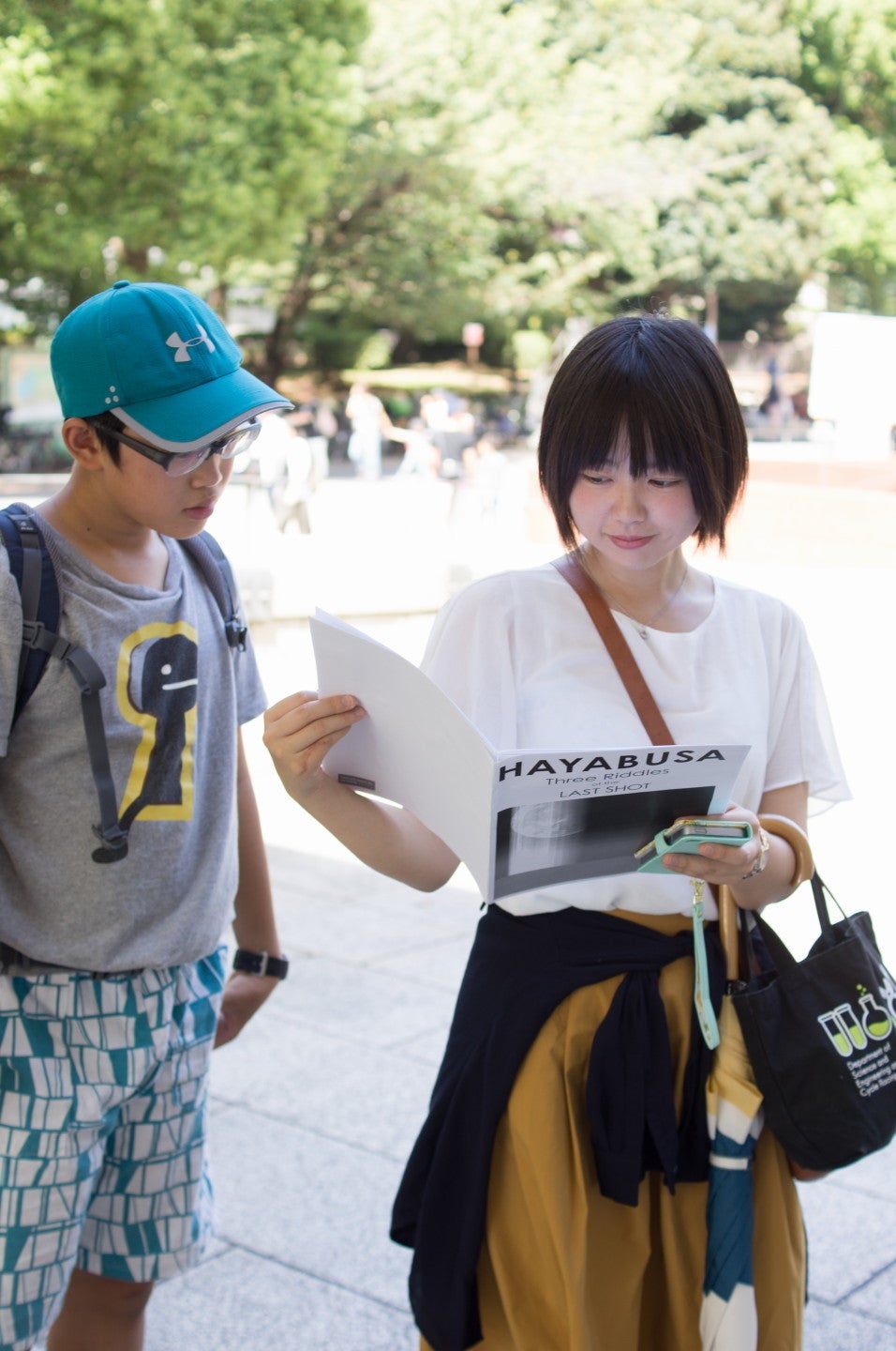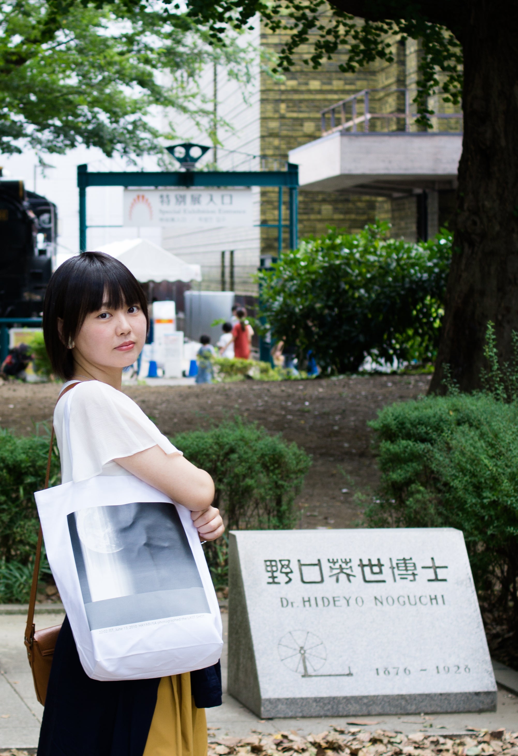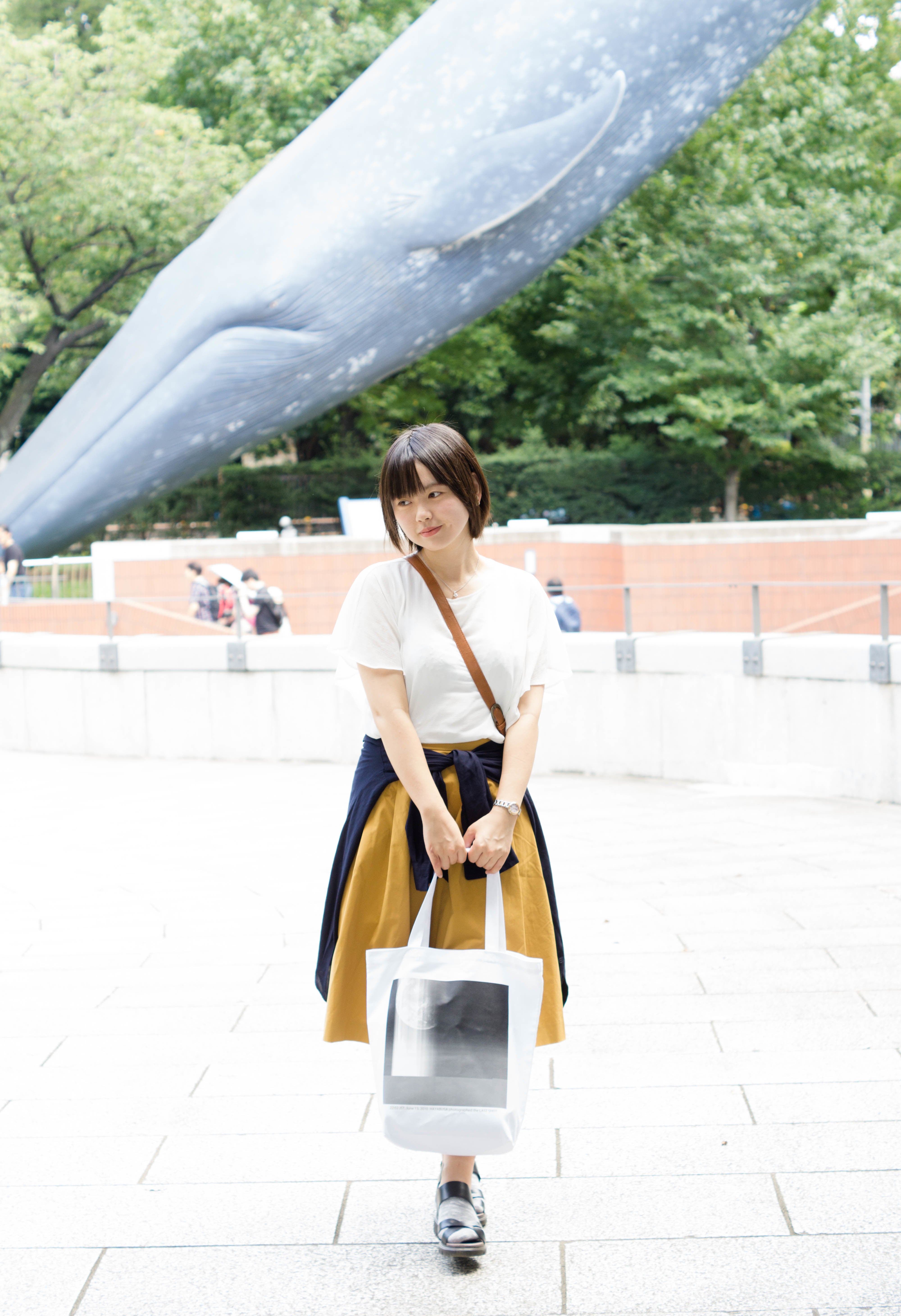 サイズ感は「これくらいが丁度いいと思う」とのことです。リケジョらしく国立科学博物館前にて撮影。