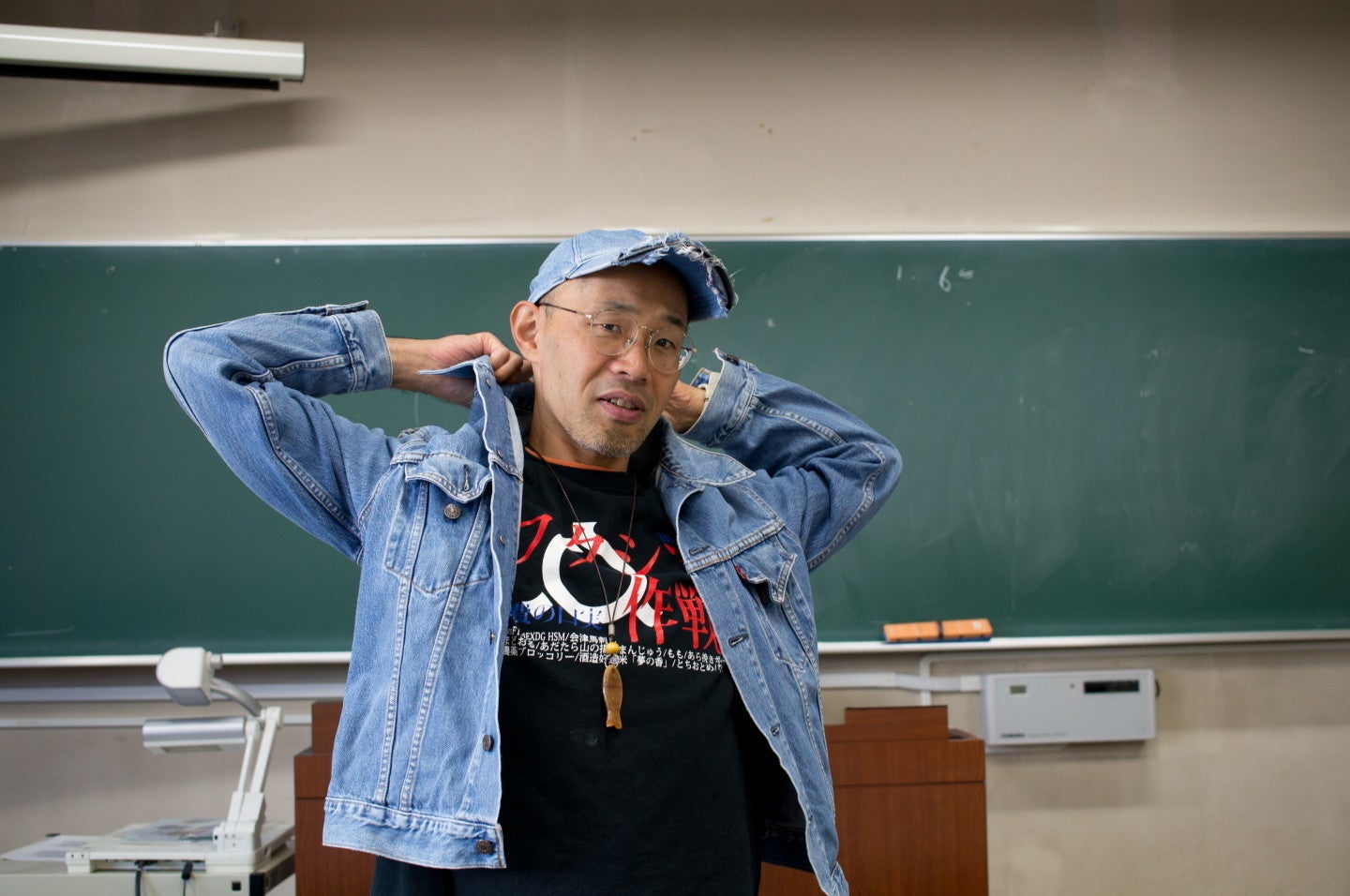 おっさんの写ってる写真なんか皆さん見たくないんじゃないかと思うのですが、CAMPFIREの中の人に私の写った写真も掲載した方が絶対に良いと強くお薦めされたので、この講義の様子を少しだけ・・・。