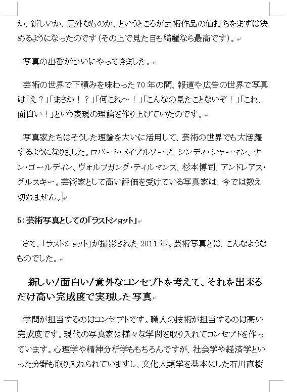 ここからはもう、余録みたいなものですが、私が書いた、芸術写真として見た場合の「ラストショット」はどのような位置づけになるのか、という5000字強の論考がございまして。こちら、あと8人、28000円のご支援で追加収録することが出来ます(手数料以外は増えたページの印刷代です)。