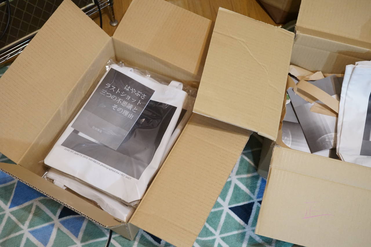 2019/01/06 21:27名古屋市科学館ミュージアムショップSO-NANDA! 様のはやぶさコーナーです。ありました。バイヤーK様にお礼とご挨拶をした後、ラストショットブック&トートが置かれているのを確認。感無量です。ありがとうございました。 もっと見るいよいよ発送です