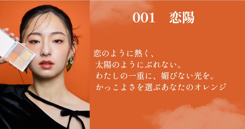 モードで大人の印象を引き出してくれるオレンジカラー「恋陽」(こいはる) 、 お花のような柔らかい印象を出してくれるピンクカラー「花憐」(かれん)。