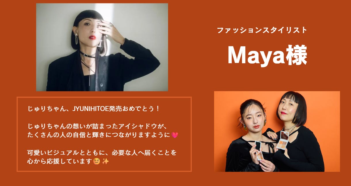 完成、そして世の中に届けること、すべて含めてJYUNIHITOEの挑戦です。このアイシャドウが現実になるまでの時間を、そばで見守っていただけたら嬉しいです。