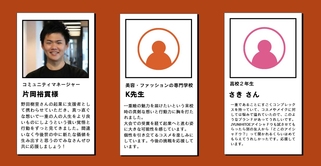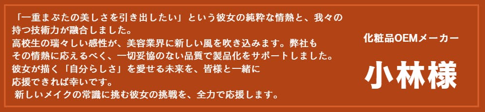私はただの女子高生かもしれません。でも、その立場だからこそ「世の中の当たり前」を疑い、「一重まぶたためのブランドを自分で作る」という挑戦ができると思っています。