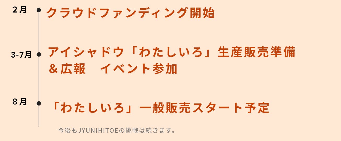 完成、そして世の中に届けること、すべて含めてJYUNIHITOEの挑戦です。このアイシャドウが現実になるまでの時間を、そばで見守っていただけたら嬉しいです。