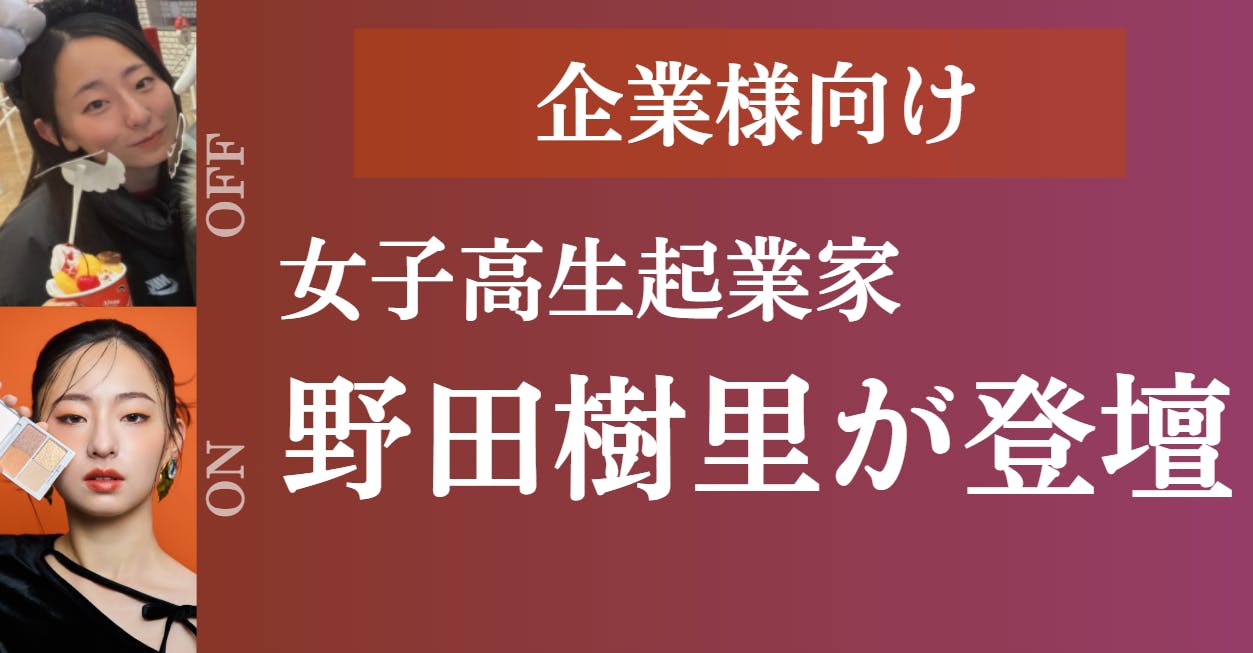 JYUNIHITOEの代表を務める現役女子高生起業家・野田樹里が、企業様向けに登壇させていただきます。17歳で起業を志し、高校生という立場で社会に向き合い、行動してきた経験をもとに、「なぜ自分がやるのか」「何のために挑戦するのか」という視点からお話しします。