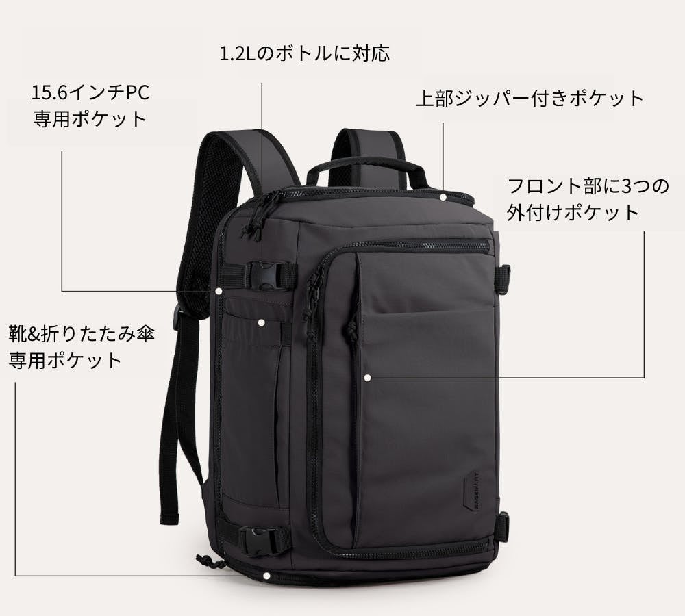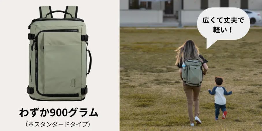 「これ1つで出かけられる」ように設計されているため、スーツケースを持たない移動にも適しています。