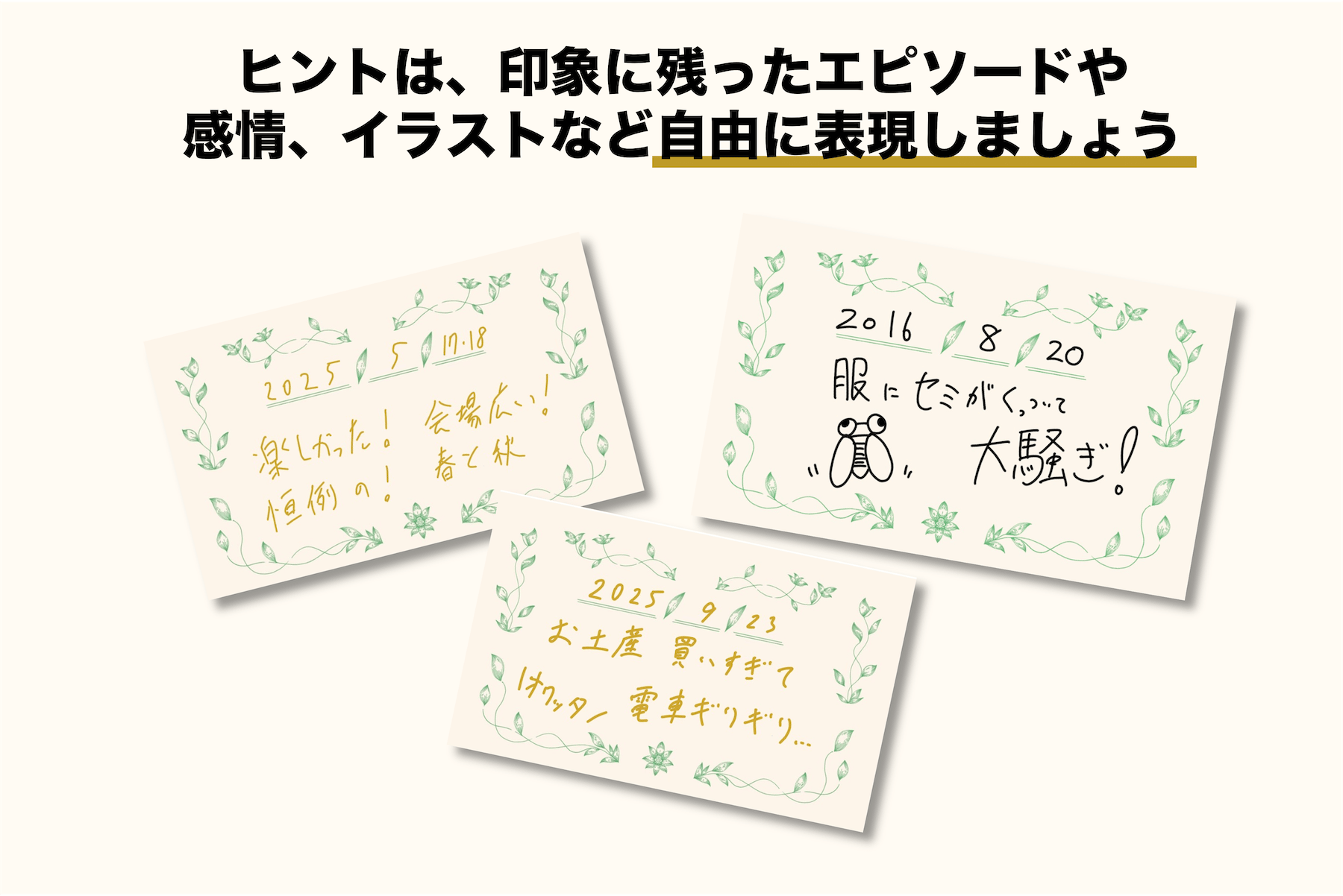 ヒントは、印象に残ったエピソードや感情、