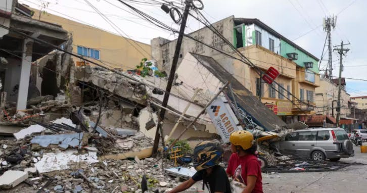 ↑2025年9月31日に発生した地震によって、建物が倒壊した様子