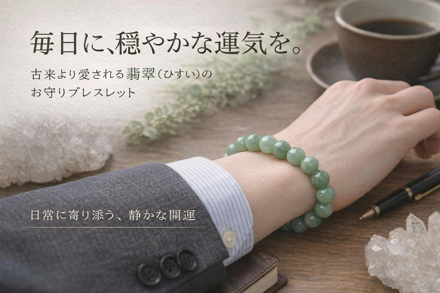 私たちの翡翠ブレスレットは、古来より“幸運を呼ぶ石”として親しまれてきた翡翠を、現代のライフスタイルに合わせてデザインした開運アクセサリーです。