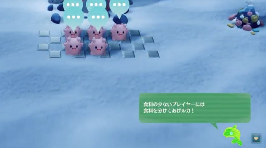 ゲーム中、画面右下にいる「ナビイルカ」がお役立ち情報を教えてくれます!ちなみに、不要だと思ったらいつでも消せます。