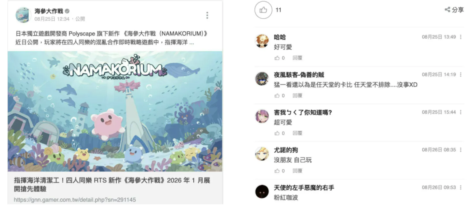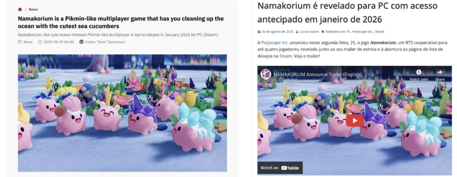 NAMAKORIUMは、8月のタイトル発表時、10月の体験版リリース時に特定グローバルエリアでのメディアアプローチとSNS広告出稿を行ったのですが、少額のみの予算しか確保できなかったこともあり、一部の海外メディアに掲載されはしましたが、あまり注目を集めることができず、想定するような効果は得られませんでした。ただ、台湾や香港や中国といったアジア圏のユーザーの声を見てみると、徐々に意識され始めているところもあるので、特定エリアのグローバル展開への可能性を感じています。