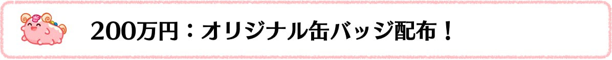 200万(400%)達成で、返礼品にグッズが含まれる支援者の方全員に、オリジナル缶バッジ配布!グッズに同封され、グッズ配送先住所に送付されます。