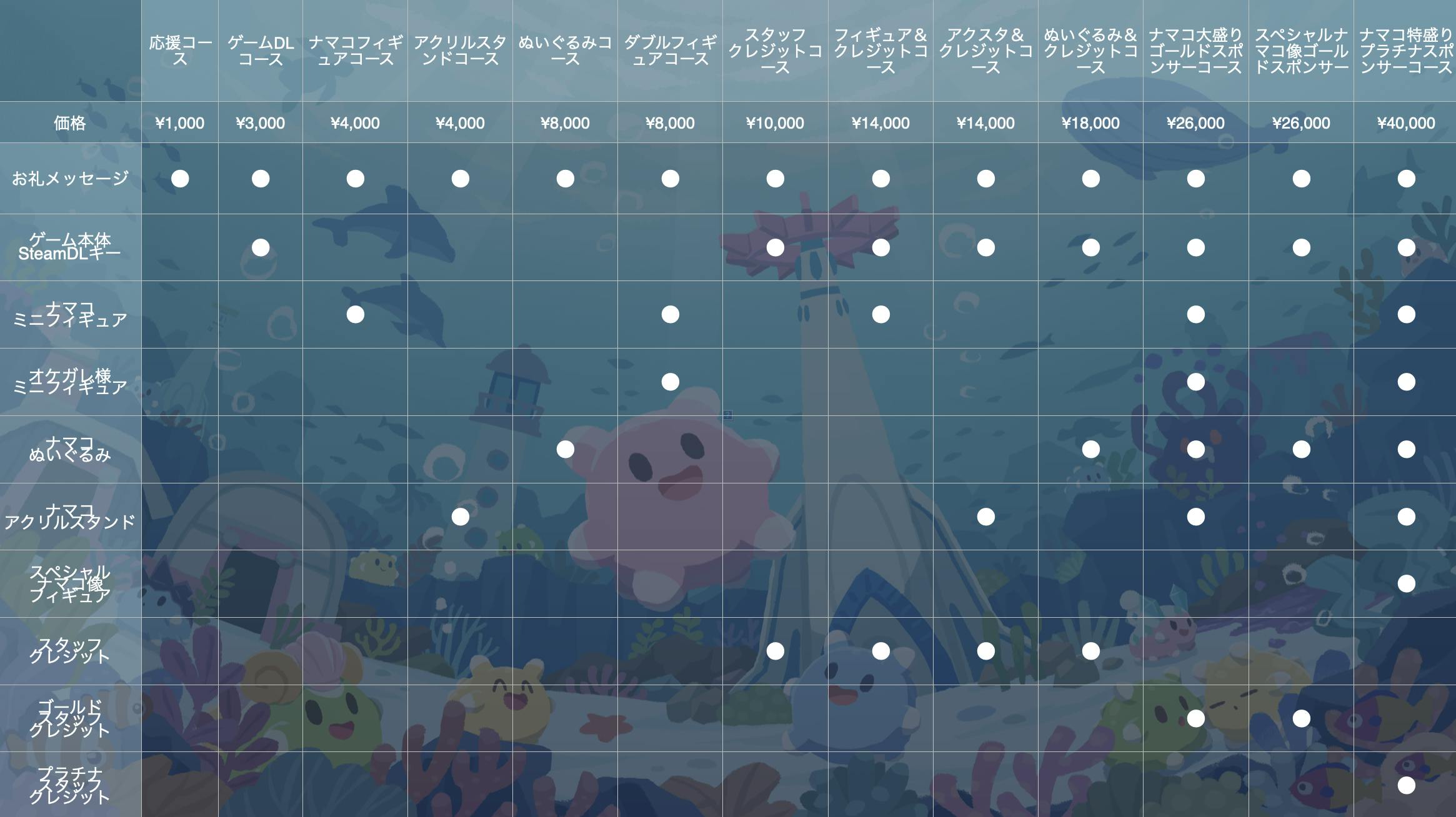 また、初報時や体験版リリース時にも、大変ありがたいことに「ナマコのグッズがほしい!」という声を多くいただいたこともあり、この度、グッズ化を含めたIP展開実現のためのクラウドファンディングを実施することになりました。