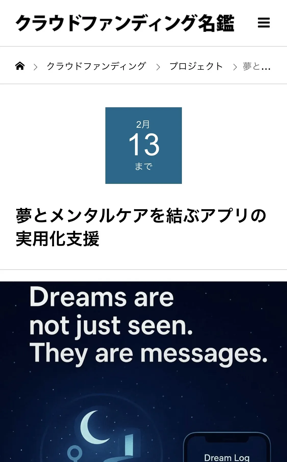 2026/01/05 15:28クラウドファンディング名鑑」**に、私たちのプロジェクト『DreamWeaver』が選出・掲載されました!▼掲載ページはこちらhttps://crowdfunding.meikan.org/project/campfire-914080/■ 掲載にあたっての想いこのプロジェクトは、一人の開発者のひらめきから始まりました。「夢は、一番素直な体の状態を表している」その確信を形にするために、宗教や占いに頼らない、科学的かつ心理的に「寄り添う」メンタルケアを目指しています。今回、名鑑に掲載していただいたことで、この『DreamWeaver』の思想が、単なる個人の思いつきを超えて、社会的に意義のある挑戦として認められたのだと感じ、身が引き締まる思いです。■ 現在の進捗状況現在、アプリのリリースに向けて着実に準備を進めています。• Apple Developer Programへの登録完了:世界配信への基盤が整いました。• SNSでの反響:海外ユーザーを中心に、先行公開前から非常に大きな期待を寄せていただいています。■ これからの展望次は、アプリの審査、そして皆様に実際に体験していただくフェーズへと進みます。寝る前と目覚めた瞬間を、今より少しだけ優しく、豊かに変えていく。この「不思議な体験」を世界中に届けるまで、引き続き全力で走り抜けます。皆様の応援が、開発の大きな原動力になっています。引き続き、DreamWeaverをよろしくお願いいたします! もっと見る