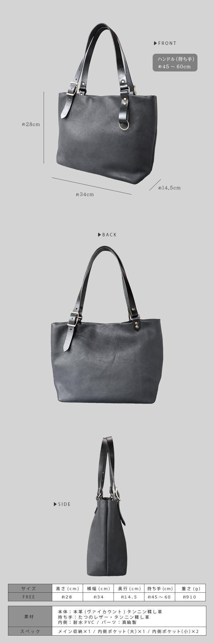 拘りの本革トートバッグ。