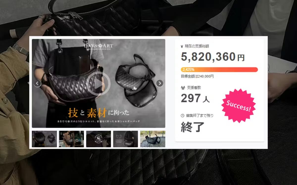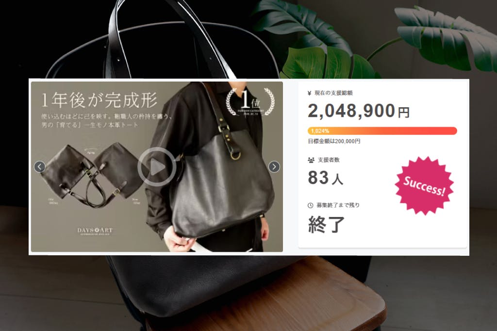 2026/03/16 10:48こんにちは、DAYSARTです。この度は、当プロジェクトにご支援頂きまして本当にありがとうございます。目標を達成することができました事改めて御礼申し上げます。今回のプロジェクトにて好評頂きました【第三弾】"技と素材”に拘ったDAYSARTバッグシリーズ、匠の本革トートバッグの定番化が決定し、DAYSART公式サイトにて一般販売を開始することが決定致しました。販売開始時期や詳細についてはまた改めてご連絡させていただきます。品番:lb373 販売価格:¥33,000(税・送料込)ご支援頂きました皆様、本当にありがとうございました。リターンについては順次制作しております。こちら、改めてご連絡させていただきますので、引きよろしくお願い申し上げます。今後とも、応援どうぞよろしくお願いいたします。DAYSARTプロジェクトチーム一同 もっと見る