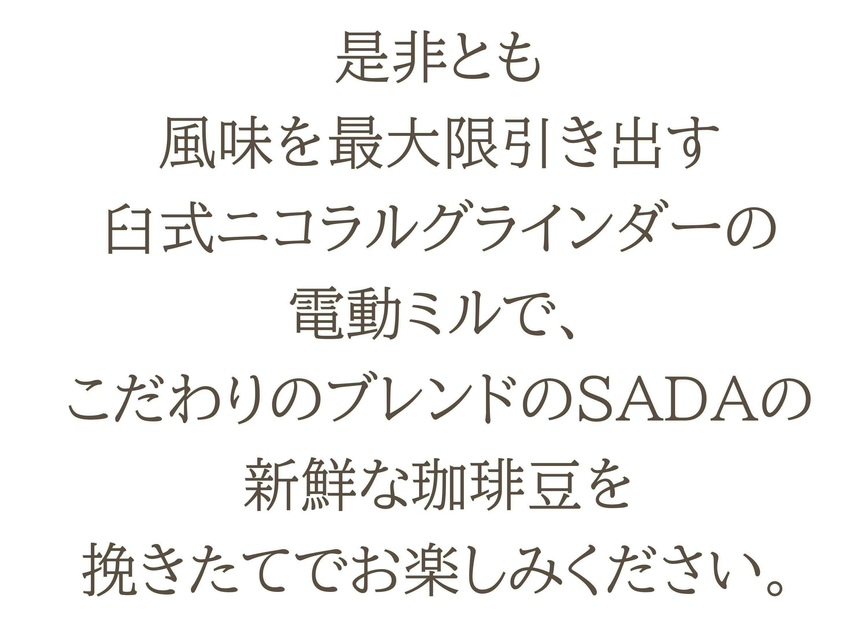 ※本商品はSADACOFFEEの監修のもと設計された電動コーヒーミルです。SADACOFFEEの焙煎技術やコーヒーへのこだわりを参考に、理想的なコーヒー体験を提供します。