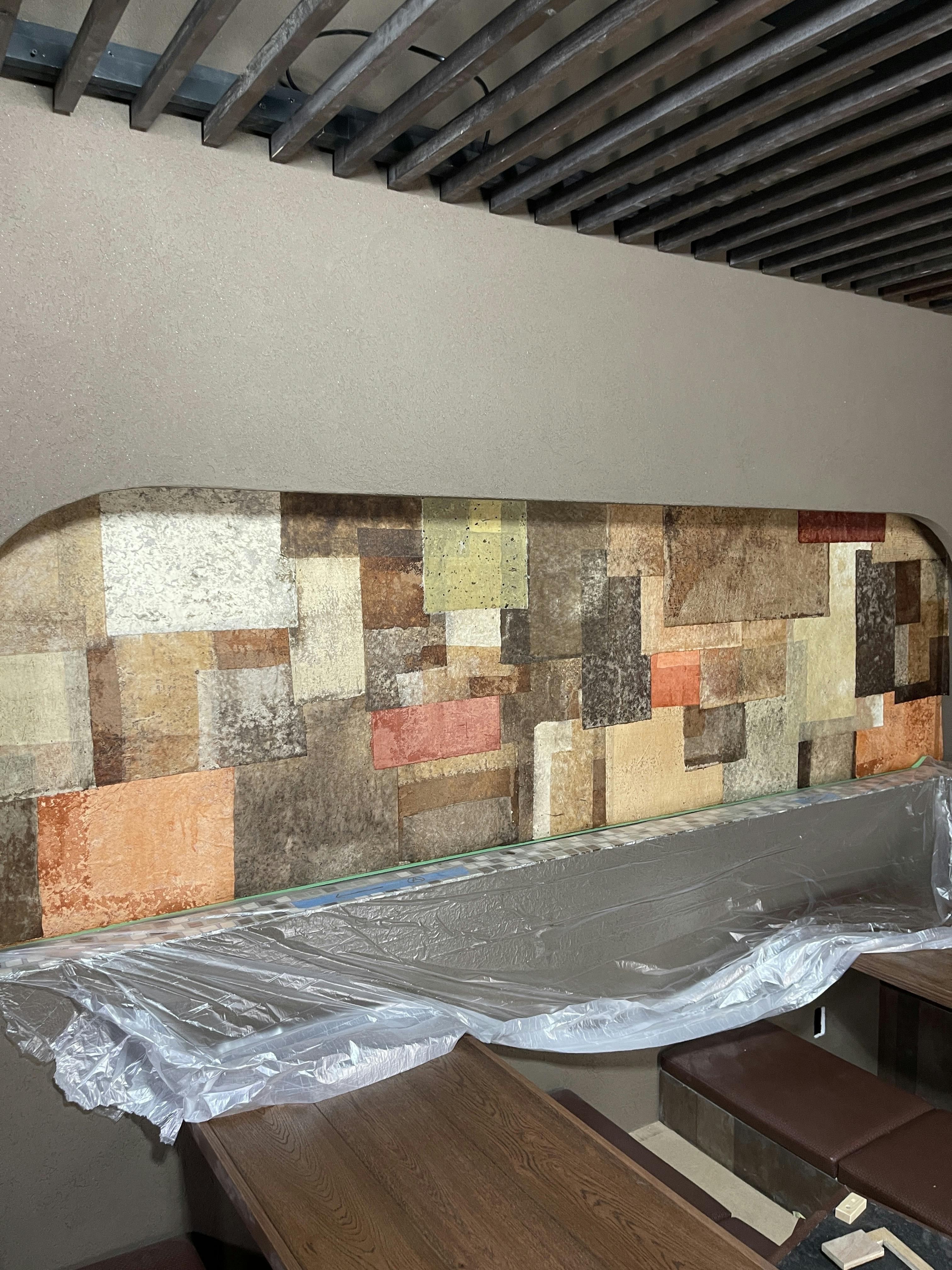 現在、店内の壁に和紙を貼る工程が進んでいます。