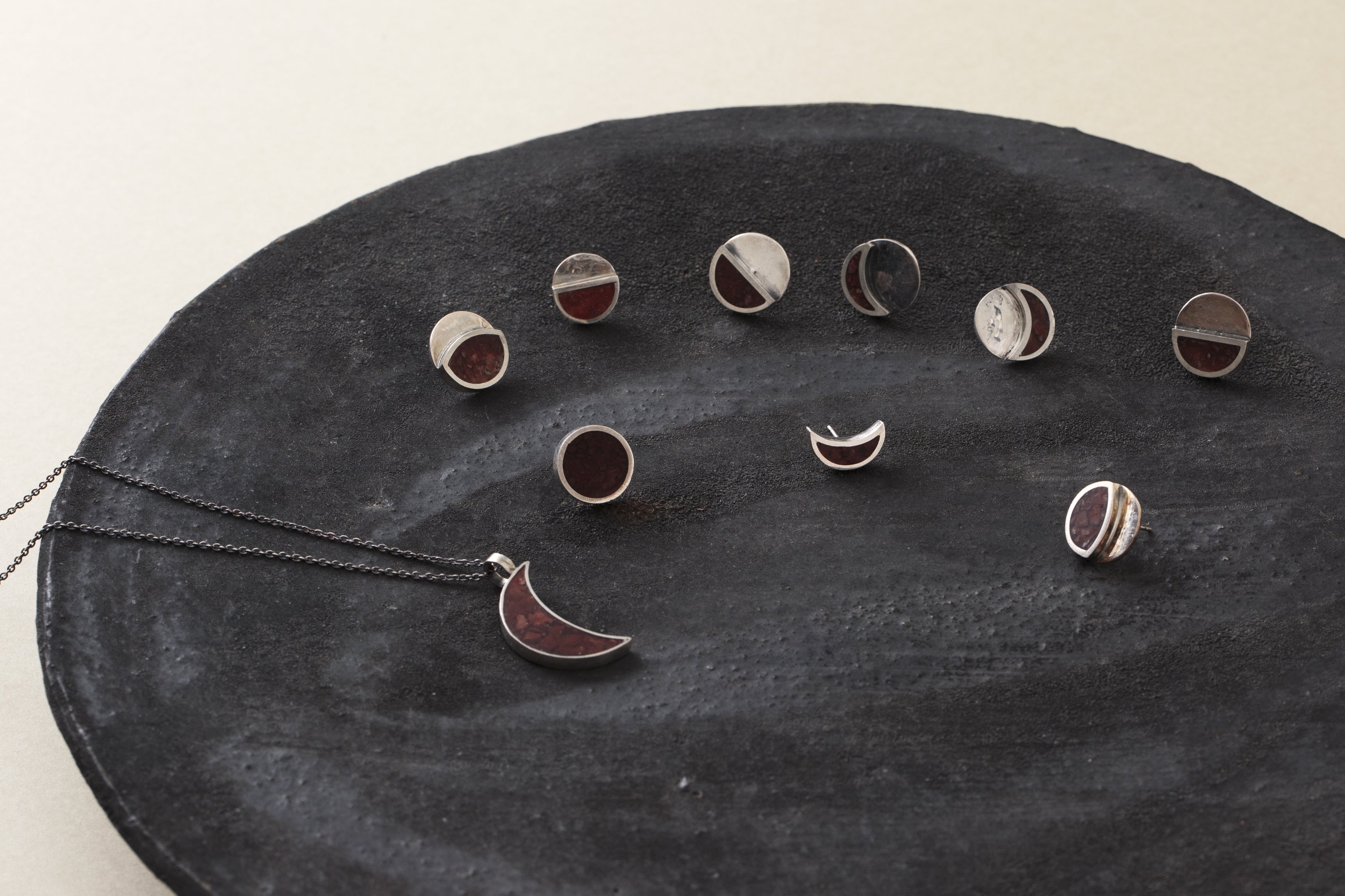 ▲セドナの赤い石を砕いて製作した月のシリーズ。人気で即完売したシリーズが形を変えて復活