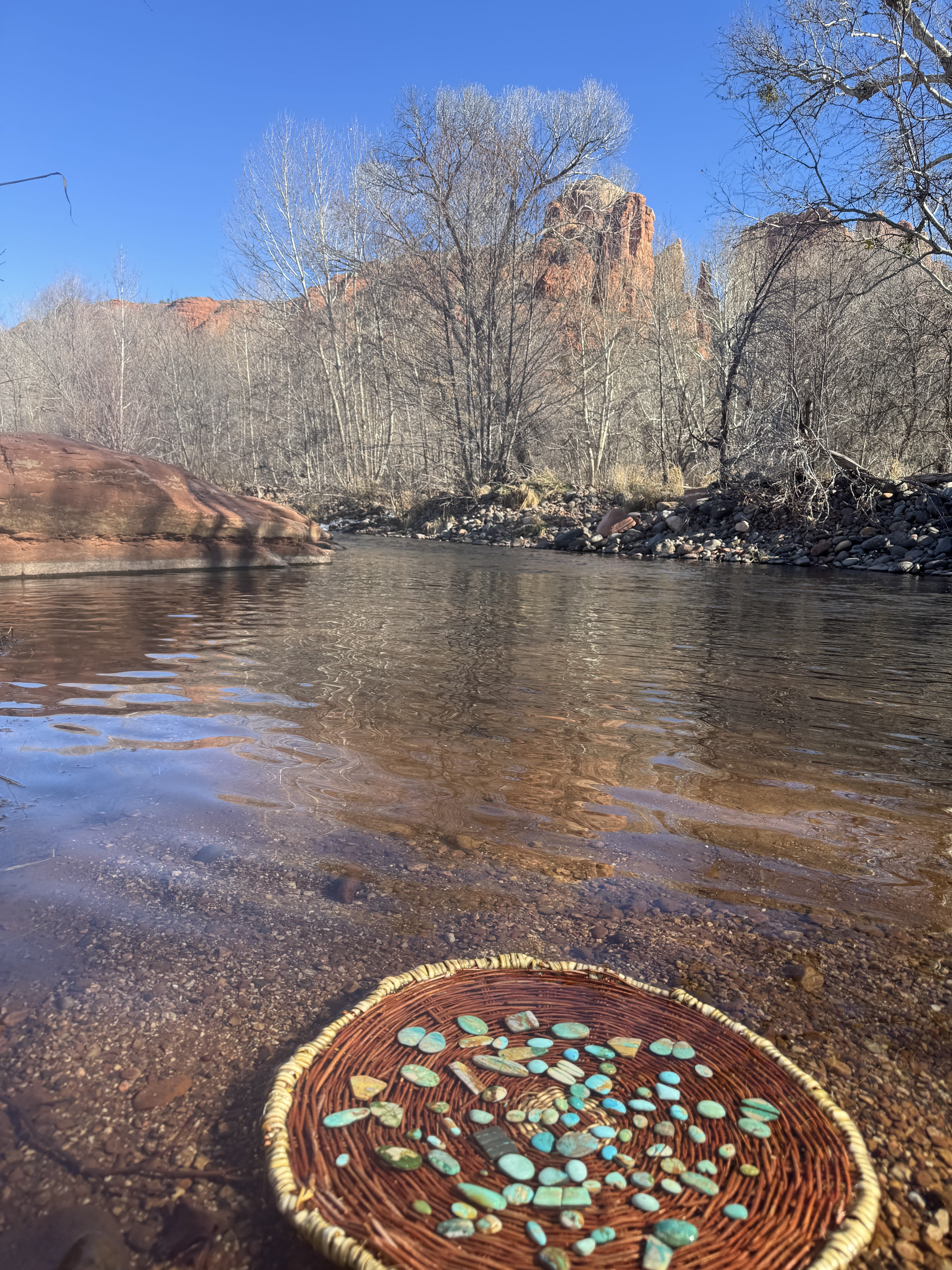 特にOak creekの下流は4大ボルテックスの1つカセドラルロックからの強いエネルギーが流れてくると云われるスポット。そこで丸一日かけて全てのターコイズを洗い浄化の儀式を行います。