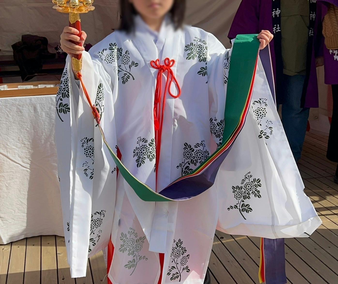 新たな試みとして、小学生から大人まで巫女さんの装束を着用できる体験コーナーも設けました。