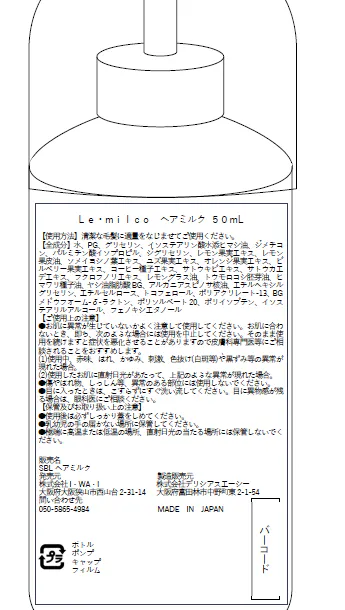 [ヘアミルク試作品の写真]