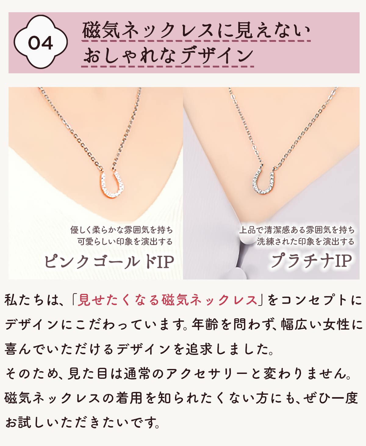 2026/02/24 07:18皆様お世話になっております。近年の自然現象は予測がつかない状況ですね。異常な暑さ・異常な雪の量など急激な気温の変化に身体が追い付いていかない事ばかりだと思います。皆様お身体は大切にして体調管理はして下さいね。さて皆様もこの寒さで肩や首がつらくないですか?寒さで筋肉が硬直し血流を悪くしいるのではないでしょうか?皆様も色々と肩こりの改善でしてきたことはあると思います。でも中々改善する傾向がみられない事で諦めていませんか?そんな皆様に最後にもう一度お試しして頂きたいのが「磁気ネックレス ホースシュー」です。・毎日肩や首を揉んでほぐすのは限界があります。・毎日付け替えたりするのは手間があります。・服装やオシャレにも我慢をすることがあります。重さがわずか約2.1gなので着けている事も忘れる軽さなので日常生活に支障が出にくいと思います。皆様のつらい肩こりを弊社の磁気ネックレスで毎日装着して頂いて今との違いを実感して頂きたいです。最後の最後にお試しして頂く商品だと自信を持っております。ご検討の程、宜しくお願いします。 もっと見る