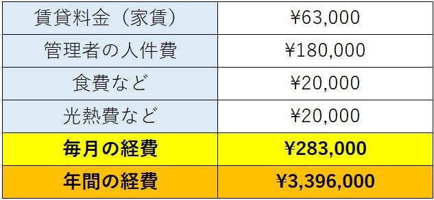 〇設備維持費:約340万円(約1年分)内約(1ヶ月分:¥283,000)