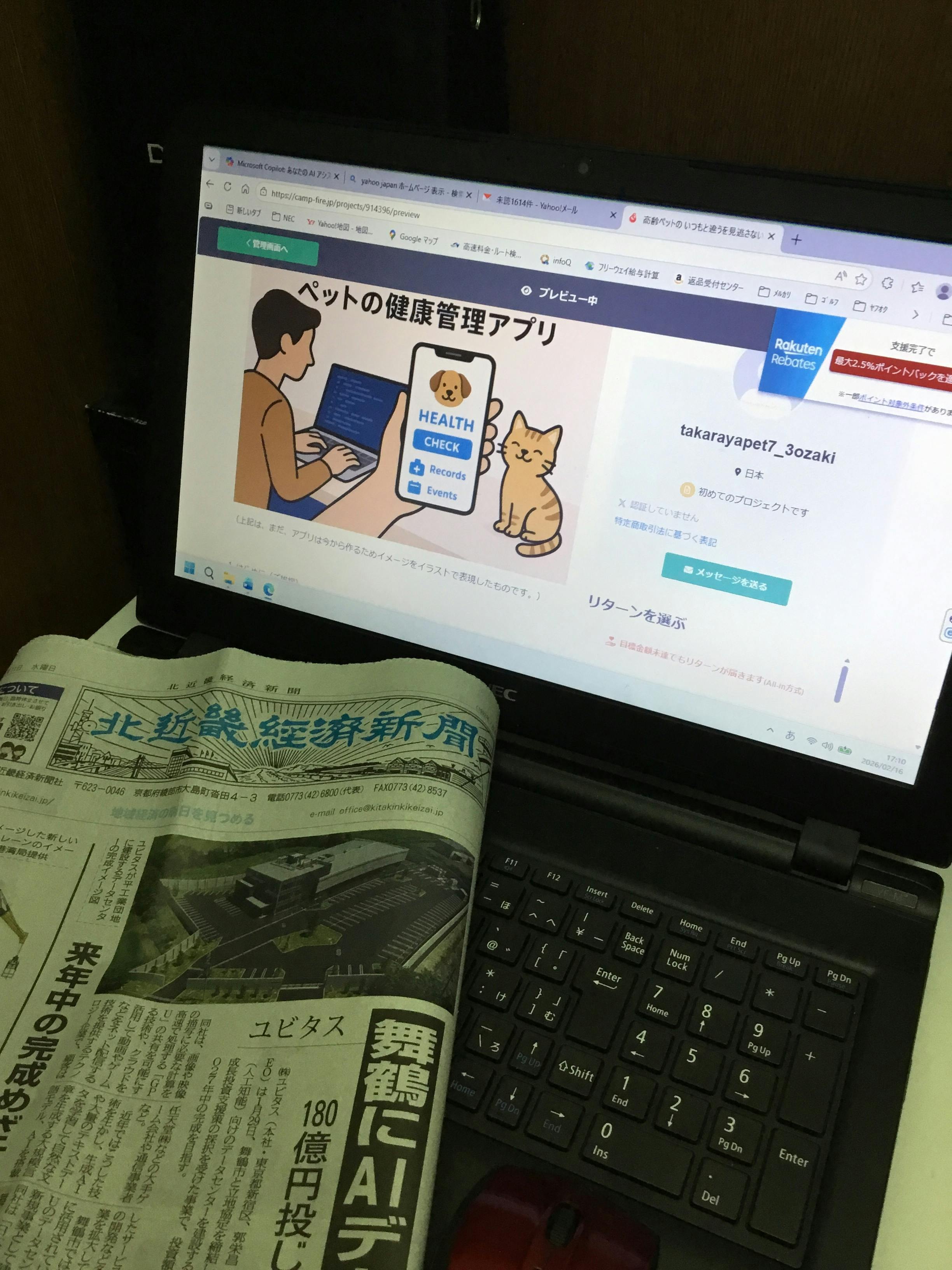 2026/02/16 17:52今日はちょっと特別なご報告です。なんと、北近畿経済新聞社(北近畿経済新聞社のページ)さんから、現在挑戦中のクラウドファンディングについて取材を受けました!取材では、なぜこのアプリを作ろうと思ったのか、老犬・老猫と暮らす飼い主さんの悩み、そしてこのプロジェクトに込めた想いをたっぷりお話ししました。また、記者さんの義理のお母さまが飼ってらっしゃるダックスが高齢で最近亡くなってしまった こともお話しいただき、大変身近に感じて話しやすかったです。私の身近に実際にあったことや高齢ペットの様々な事例を、早口でまくし立ててしまいましたが、それをどううまく文章にまとめていただけるのか楽しみです。記事は3月1日発刊予定とのこと。 また掲載されたら、こちらでもご報告しますね!今日も読んでいただきありがとうございました。 もっと見る今日もてんやわんやで活動しております。