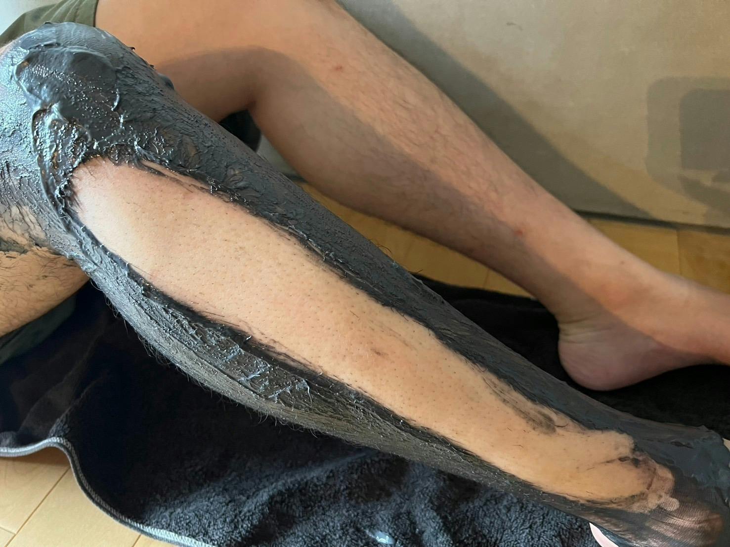 たっぷりムダ毛が隠れるくらい指で塗る。ムラなく塗ります。 - STEP2 待つ